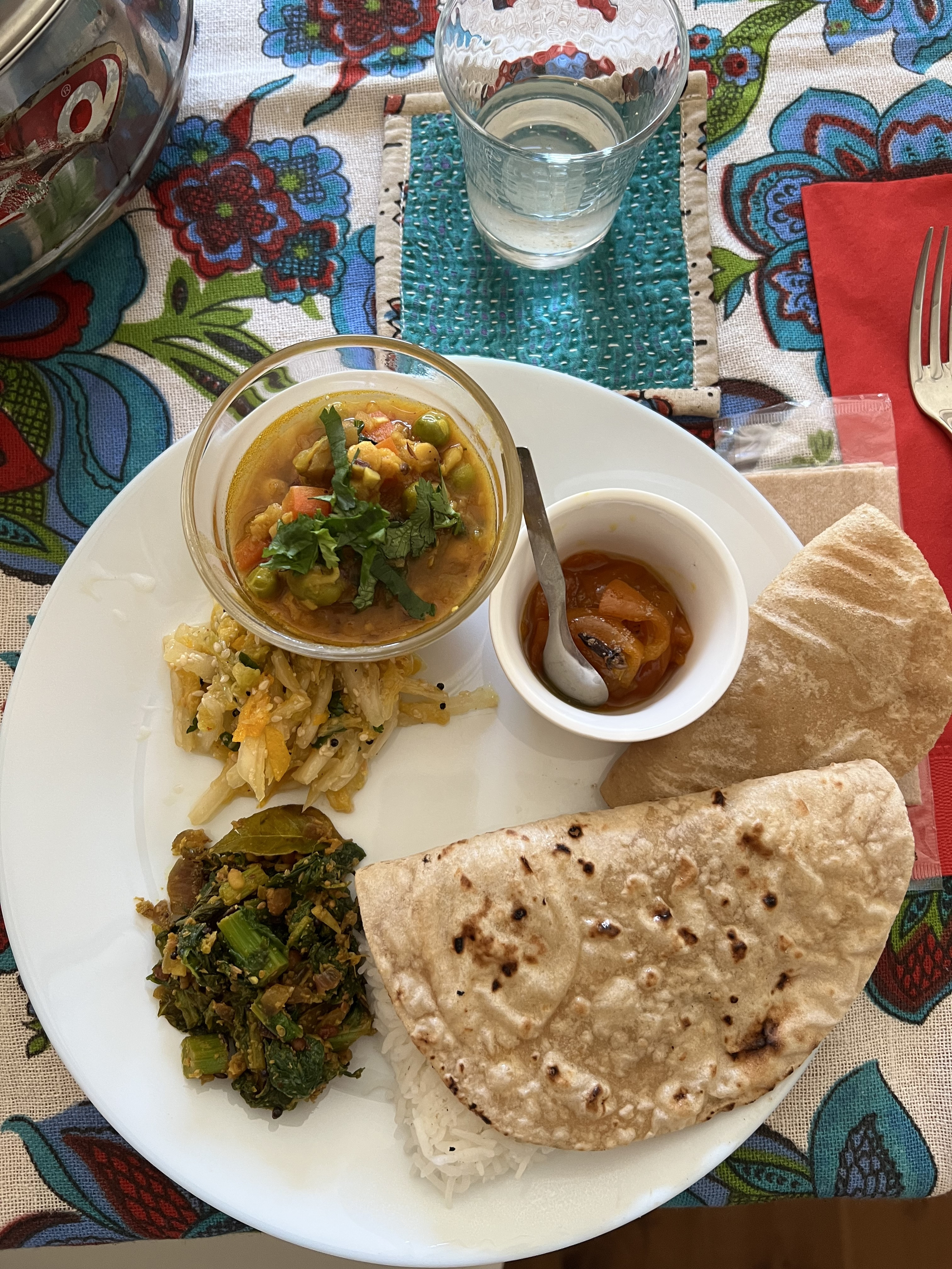 メニュー:ギー(Ghee)、ダールスープ、サブジ、ご飯